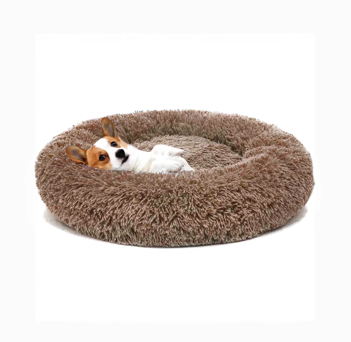 -Cama antiansiedad: El forro de piel sintética suave y peluda brinda a sus mascotas un ambiente relajante y relajante. Nuestra lujosa cama para perros con forma de dona brinda un ambiente más tranquilo, menos ansioso y feliz y relajado a sus mascotas, desde una siesta corta hasta una buena noche de sueño, donde quiera que esté en casa o por fuera.