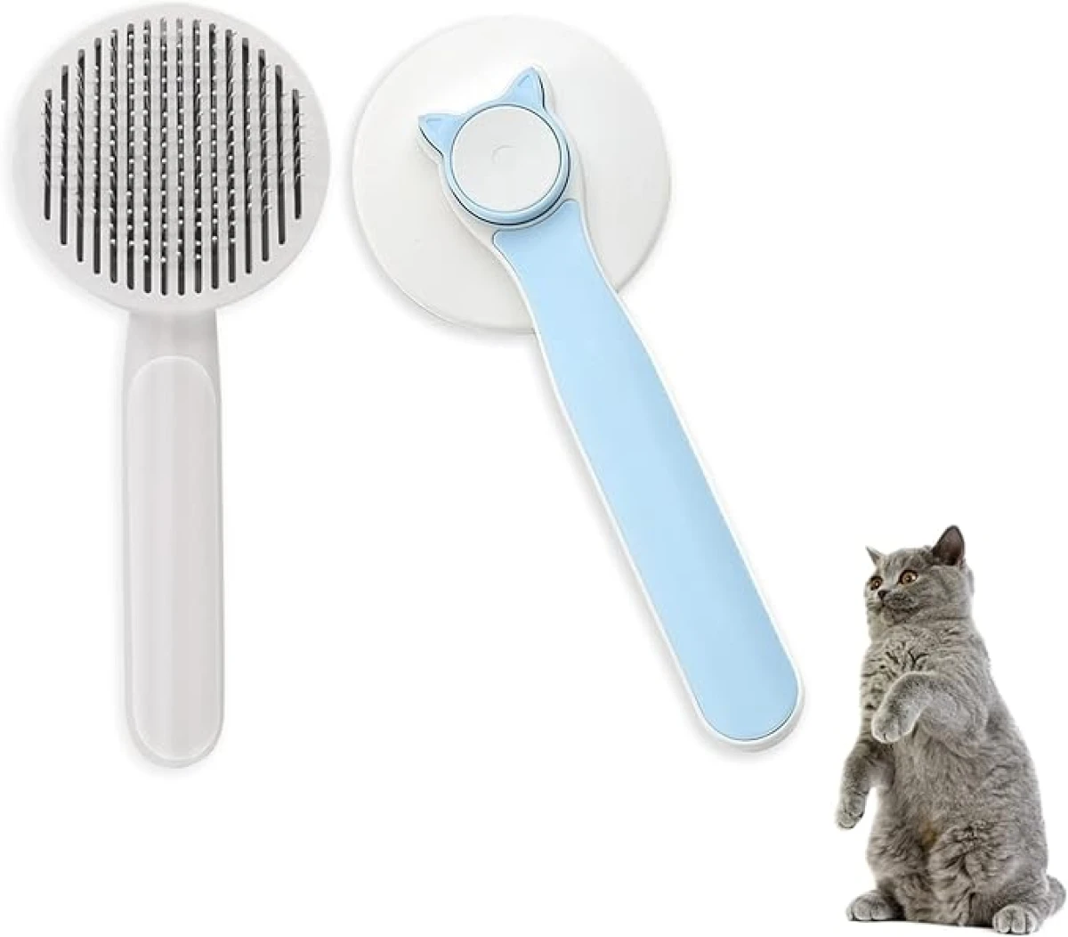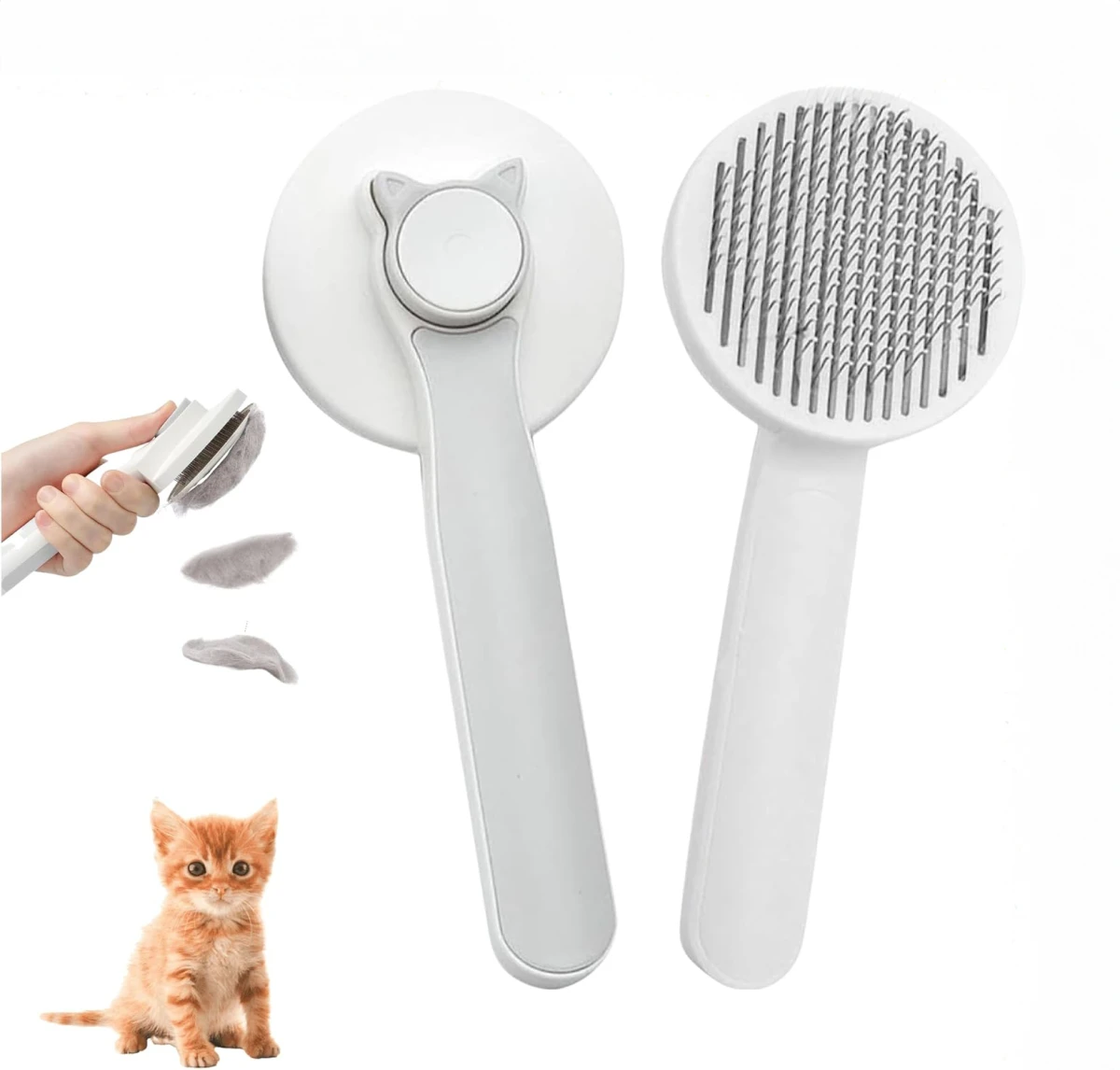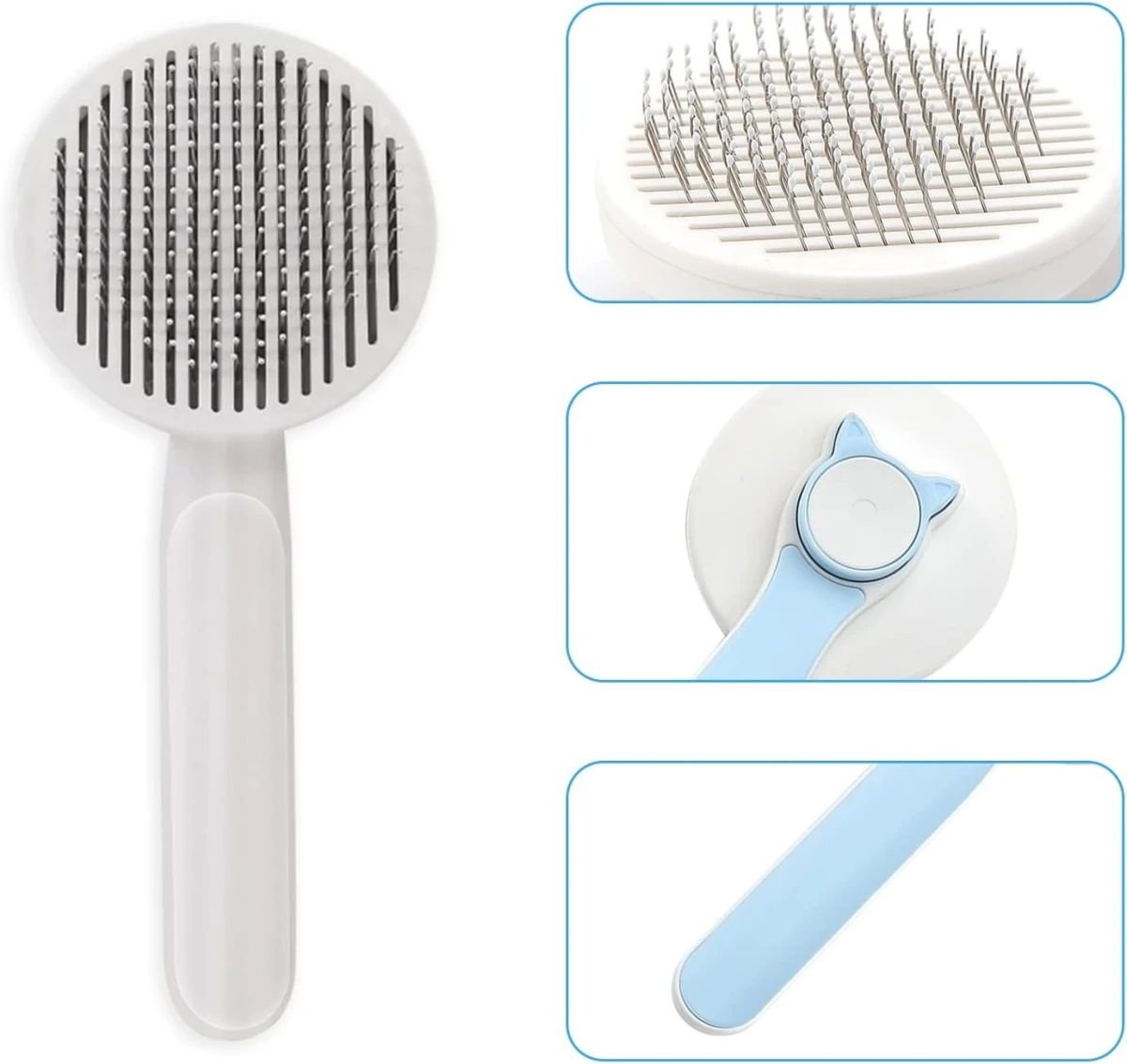 Este es un cepillo multifuncional para mascotas que combina la depilación y el cuidado de la mascota. El peine extraíble en la parte inferior sirve para eliminar los nudos de pelo. Los peines en forma de disco se utilizan para tratar el pelo de los animales como un masaje o eliminar la suciedad.