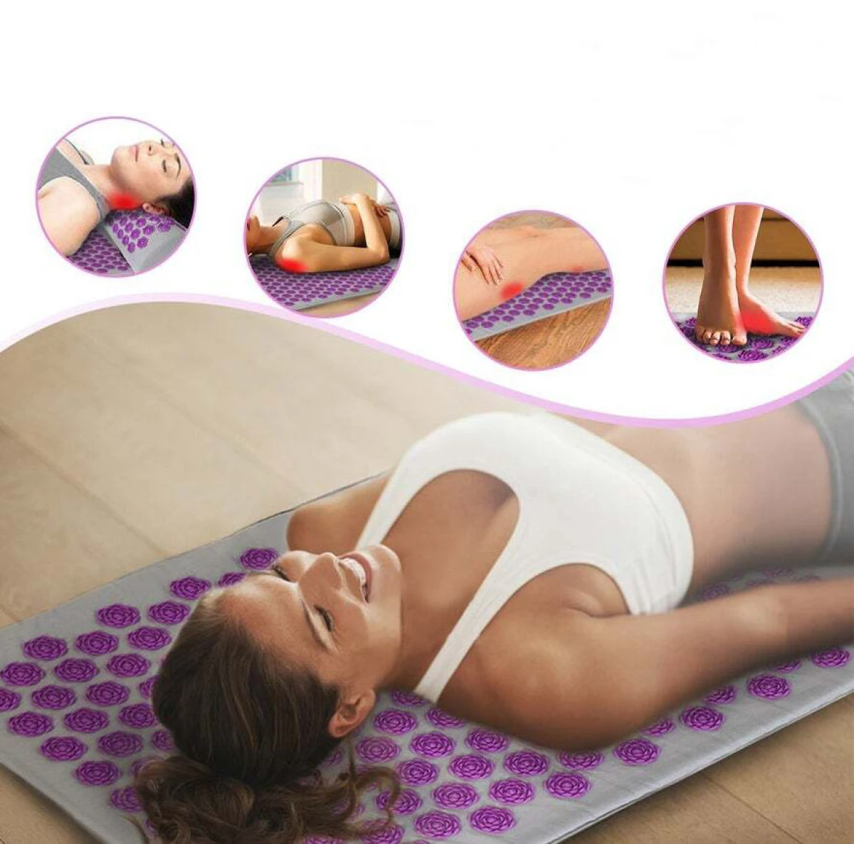 - Relajación y masaje: Con más de 7800 puntas de plástico, la alfombrilla de masaje distribuye tu peso a través de los puntos de manera uniforme y segura, y espera una sensación cálida que reemplaza las tensiones y las molestias con alivio del dolor y relajación.